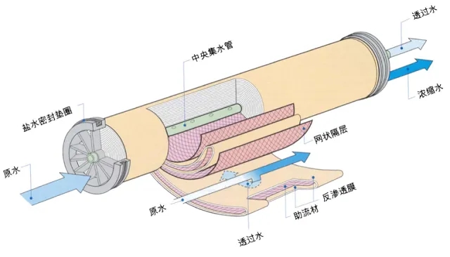 超純水反滲透系統(tǒng)主要由預(yù)處理、反滲透裝置和后處理等部分組成。預(yù)處理系統(tǒng)通過顆粒過濾器、活性炭吸附過濾器等裝置,對(duì)原水中的雜質(zhì)進(jìn)行有效過濾,保障后續(xù)反滲透過程的穩(wěn)定進(jìn)行。反滲透裝置利用反滲透膜的選擇透過性,對(duì)原水中的水分子進(jìn)行選擇性分離,進(jìn)而得到超純水。